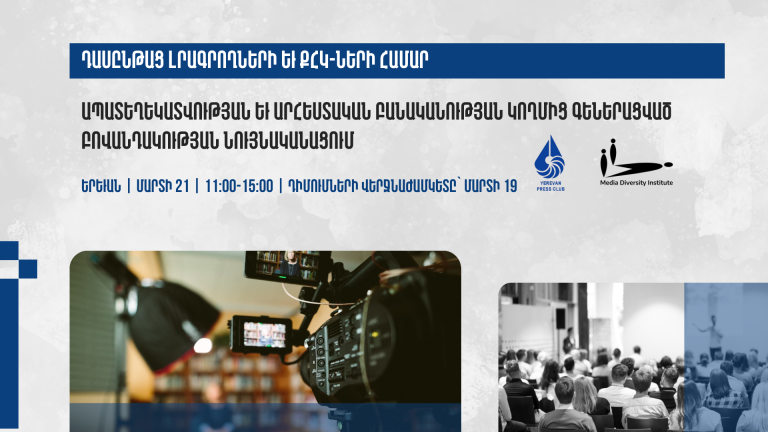 Մենք իրականացնում ենք դասընթացներ էթիկական լրագրության, բազմազանության լուսաբանման, մեդիայի հետ աշխատանքի, թվային և կիբեռանվտանգության, անձնական տվյալների պաշտպանության, փաստերի ստուգման, արհեստական բանականության և տեխնոլոգիաների թեմաներով։