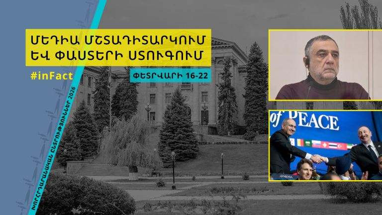 2026-ի խորհրդարանական ընտրություններին ընդառաջ մենք համագործակցում ենք Հայաստանում փաստերի ստուգման inFact ցանցի և PopUp Newsroom-ի հետ՝ աջակցելով լրատվամիջոցներին իրականացնել փաստերի ստուգման, ապատեղեկատվության և հիբրիդային պատերազմների հակազդման գործողություններ։ Զուգահեռ մենք մշտադիտարկում ենք Հայաստանի տեղեկատվական միջավայրը և հրապարկում շաբաթական զեկույցներ՝ անդրադառնալով պատմույթների միտումներին և զարգացումներին։