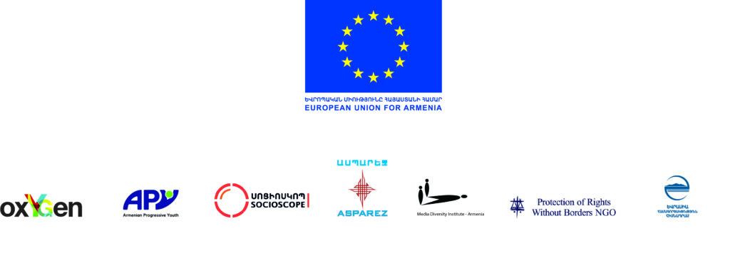 “EU4LabourRights: Increasing Civic Voice and Action for Labour Rights and Social Protection in Armenia” project is implemented by OxYGen Foundation, Socioscope NGO, “Asparez” Journalists’ Club NGO, Armenian Progressive Youth NGO, Media Diversity Institute – Armenia in cooperation with Protection of Rights without Borders NGO, and Eurasia Partnership Foundation. The Project will facilitate a multi-stakeholder policy Platform – CVA which will lead national consultations on the development and implementation of relevant public policies aimed at addressing the discrimination and violation of labour rights, with the involvement of grassroots organisations and activists’ nonformal groups.